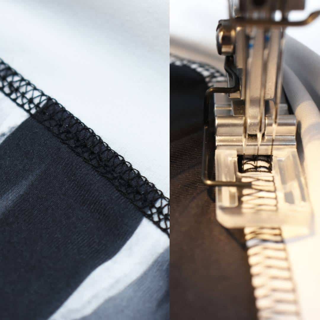 To mimic the industrial flatlock seams I did a reverse 3-thread top stitching on my coverstitch machine. Since the black fabric repels needles I struggled getting the top stitching perfect and had to redo it in several places due to skipped stitches. I even had a dream about the seams unraveling! But normally this method works really well.